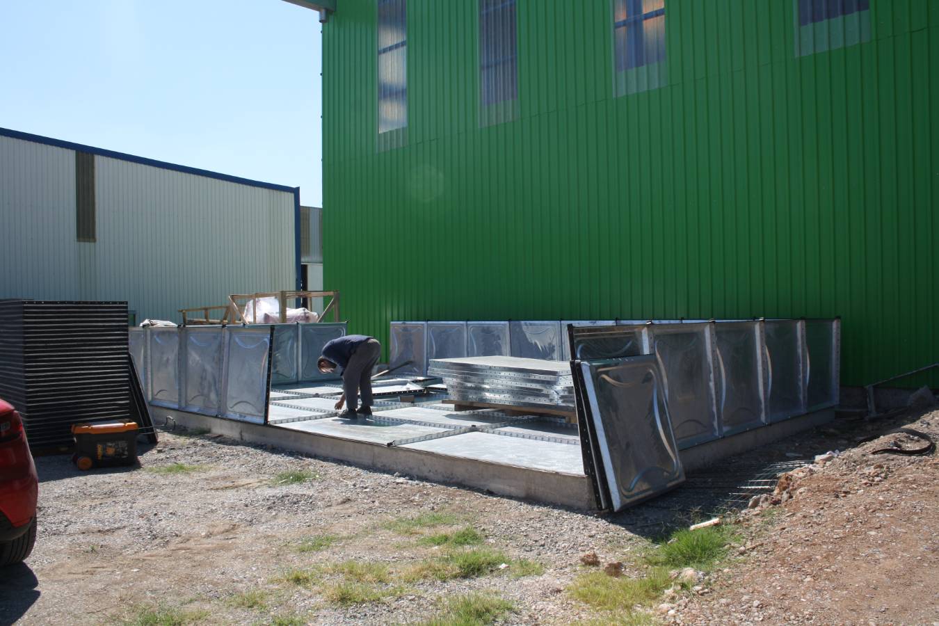 Modüler depolar yüksek kapasiteli preslerde soğuk sıvama yöntemiyle üretilir. Preslerde üretilen bu parçalar gerekli düzeltmeleri ve temizlikleri yapılarak yine özel olarak hazırlanmış delik açan preslerde yan yüzeylerine delikler açılarak üretim aşaması bitirilir. Üretilen depo parçaları civata, conta ve diğer sarf malzemeleri eklenerek özel ölçülerde hazırlanmış paletler üzerinde ambalajlanır ve sevk edilecek duruma getirilir. Ambalajlanması tamamlanan ürünler siz değerli müşterilerimizin verdiği sevk adreslerine sevk edilerek montaj öncesi aşaması tamamlanır. Deponun kurulacağı alana sevk edilen depolar yönlendirilen montaj ekiplerimiz tarafından montajları tamamlanarak su testi yapmaya hazır hale getirilir. Montajı tamamlanan depolar mümkün olması ve su sağlanması durumunda doldurularak ve su testi yapılarak siz değerli müşterilerimize su testinin yapıldığına dair formlar doldurularak teslim edilir. Montaj sonrası suyun sağlanamaması durumunda su testi müşterilerimiz tarafından yapılacaktır. Montajı yapılan ve devreye alınan modüler depolar içine koyulacak suyun niteliğine göre belirli dönemlerde boşaltılarak temizliği ve bakımı yapılır. Bu durum depo içindeki suyun daha sağlıklı olmasını sağlamakla birlikte depoların ekonomik ömrünü de uzatmaktadır.
