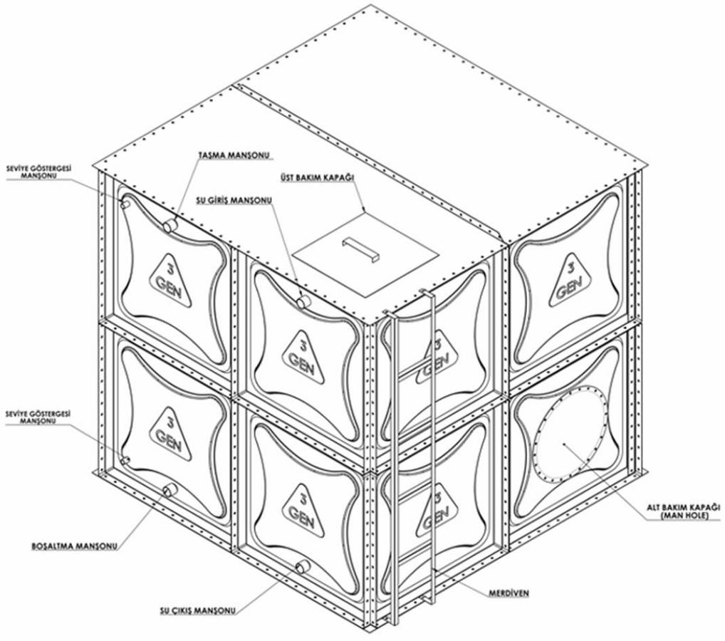Modüler depolar içindeki sıvıyı en pratik ve sağlıklı depolama yöntemi olup, kullanım amacına uygun olarak AISI 304 veya 316 Kalite Çelik ve Galvaniz olarak üretilmekte ve bu depolar daha çok su depolamak amacıyla kullanılmaktadır. Modüler depolar kullanım amacına uygun malzemeler kullanılarak, İçme ve Kullanma Suyu Deposu, Yangın Suyu Deposu, Tarımsal Sulama Deposu amacıyla kullanılabildiği gibi standartlara uyması şartıyla bir çok sıvı maddeyi de depolama amacıyla kullanılmaktadır. Bu tip depoların hangi tip sıvı malzemeler ve ne amaç için kullanılabileceği ile ilgili firmamıza başvurabilir ve bilgi alabilirsiniz.